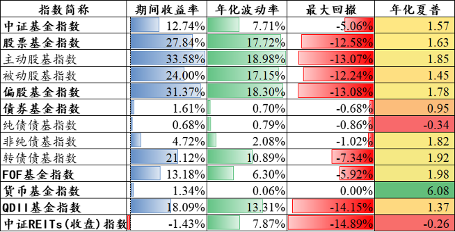 图:主要中证基金指数(股票型、债券型等)业绩指标