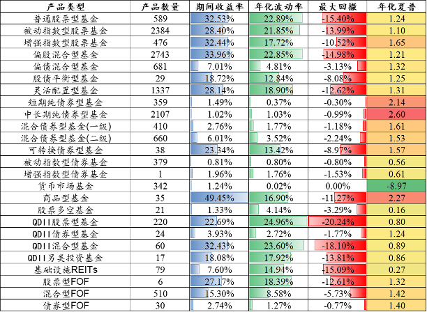 图:主要类型公募基金的平均业绩指标