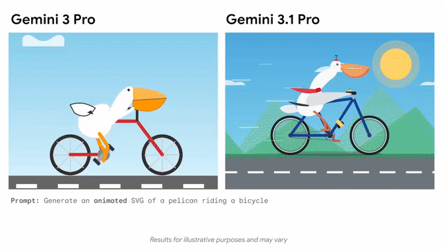 Gemini 3.1 Pro可以通过简单提示生成动画SVG