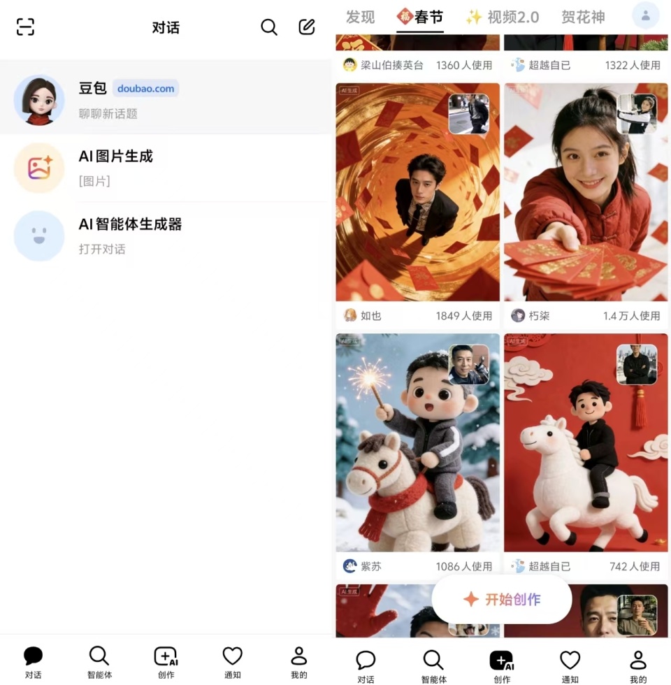 今年春晚的赞助商里,多了一个以前从没在年夜饭桌上出现过的词——豆包。我们家在广东惠州的一个小镇上,“豆包”对于南方人而言可能不是那么熟悉的食物,我妈看到豆包,随口问了句这是什么?